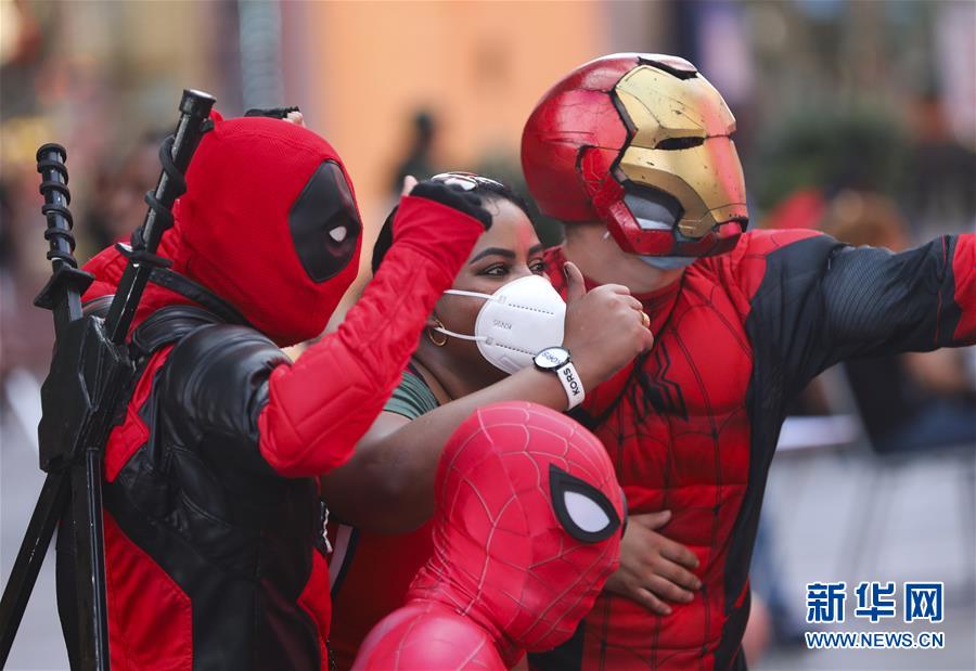 6月27日,在美國紐約時報廣場,一名游客與角色扮演者合影。美國約翰斯·霍普金斯大學(xué)27日發(fā)布的新冠疫情最新統(tǒng)計(jì)數(shù)據(jù)顯示,截至美國東部時間27日16時35分(北京時間28日4時35分),美國累計(jì)新冠確診病例2500419例,累計(jì)死亡病例125434例。新華社記者王迎攝