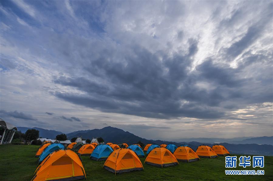 6月27日在杭州市富陽區(qū)常安鎮(zhèn)永安山頂拍攝的帳篷酒店。近期,浙江省杭州市富陽區(qū)場口鎮(zhèn)、常安鎮(zhèn)和湖源鄉(xiāng)組團(tuán)開啟了一場夏季“綠水青山嘉年華”。這幾個(gè)壺源溪流域鄉(xiāng)鎮(zhèn)整合生態(tài)旅游資源,組團(tuán)開發(fā)山村旅游項(xiàng)目,游客可以參與壺源溪水上游樂、露營永安山頂、特色農(nóng)產(chǎn)品集市和瓜果節(jié)等特色活動(dòng)。新華社記者徐昱攝