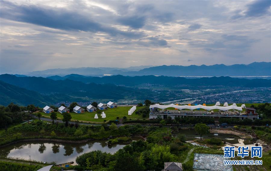 空中俯瞰杭州市富陽區(qū)常安鎮(zhèn)永安山頂?shù)膸づ窬频辏?月27日攝,無人機(jī)照片)。近期,浙江省杭州市富陽區(qū)場口鎮(zhèn)、常安鎮(zhèn)和湖源鄉(xiāng)組團(tuán)開啟了一場夏季“綠水青山嘉年華”。這幾個(gè)壺源溪流域鄉(xiāng)鎮(zhèn)整合生態(tài)旅游資源,組團(tuán)開發(fā)山村旅游項(xiàng)目,游客可以參與壺源溪水上游樂、露營永安山頂、特色農(nóng)產(chǎn)品集市和瓜果節(jié)等特色活動(dòng)。新華社記者徐昱攝