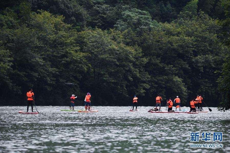 6月28日,水上運(yùn)動(dòng)愛好者在杭州市富陽區(qū)湖源鄉(xiāng)的壺源溪上體驗(yàn)槳板運(yùn)動(dòng)的樂趣。近期,浙江省杭州市富陽區(qū)場口鎮(zhèn)、常安鎮(zhèn)和湖源鄉(xiāng)組團(tuán)開啟了一場夏季“綠水青山嘉年華”。這幾個(gè)壺源溪流域鄉(xiāng)鎮(zhèn)整合生態(tài)旅游資源,組團(tuán)開發(fā)山村旅游項(xiàng)目,游客可以參與壺源溪水上游樂、露營永安山頂、特色農(nóng)產(chǎn)品集市和瓜果節(jié)等特色活動(dòng)。新華社記者徐昱攝