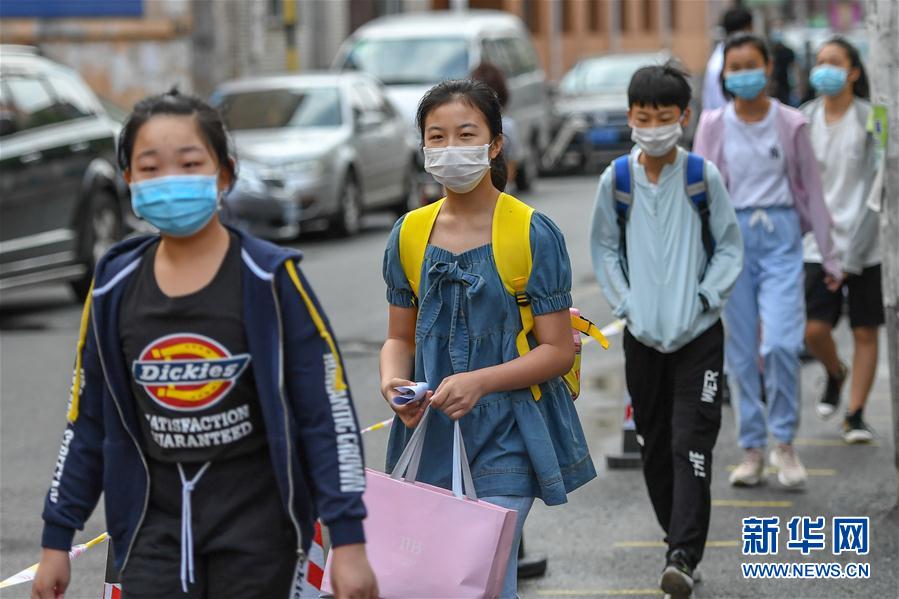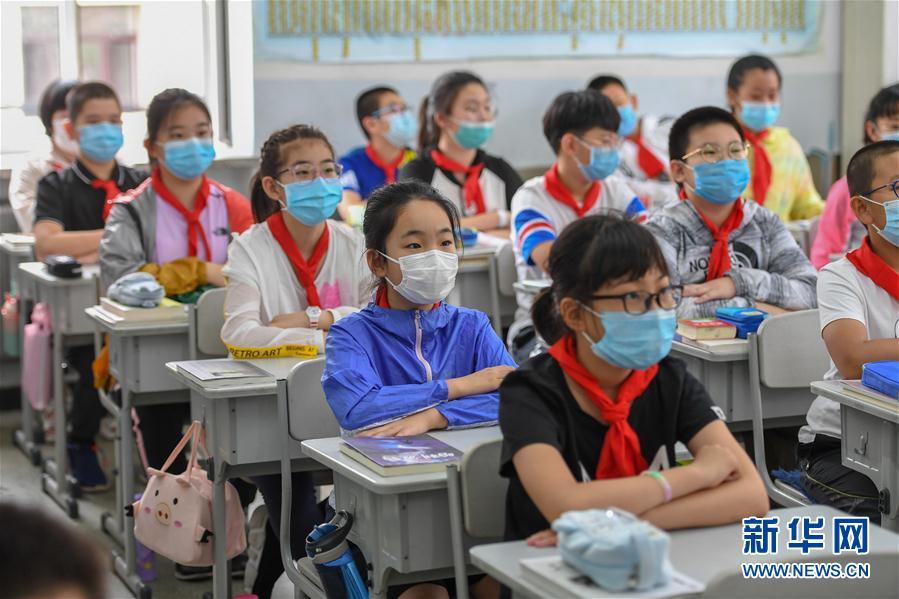 當(dāng)日,吉林省吉林市城區(qū)初中一、二年級(jí),小學(xué)四至六年級(jí)復(fù)課。吉林市教育局要求各學(xué)校組織學(xué)生錯(cuò)峰入校、放學(xué)、就餐和參加體育活動(dòng),確保校園疫情防控安全。新華社記者張楠攝