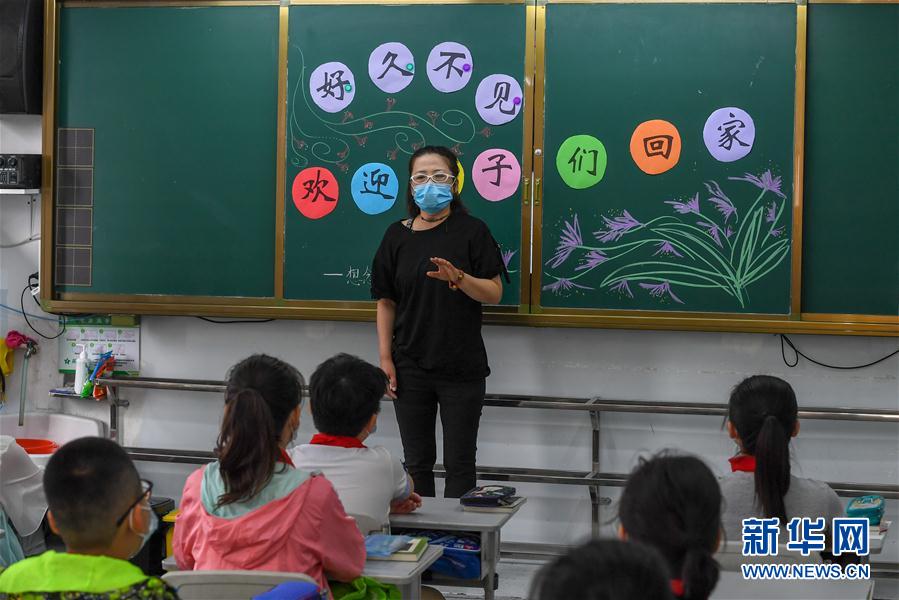 6月29日,在吉林市第一實(shí)驗(yàn)小學(xué),教師關(guān)海英為學(xué)生上開(kāi)學(xué)第一課。新華社記者張楠攝