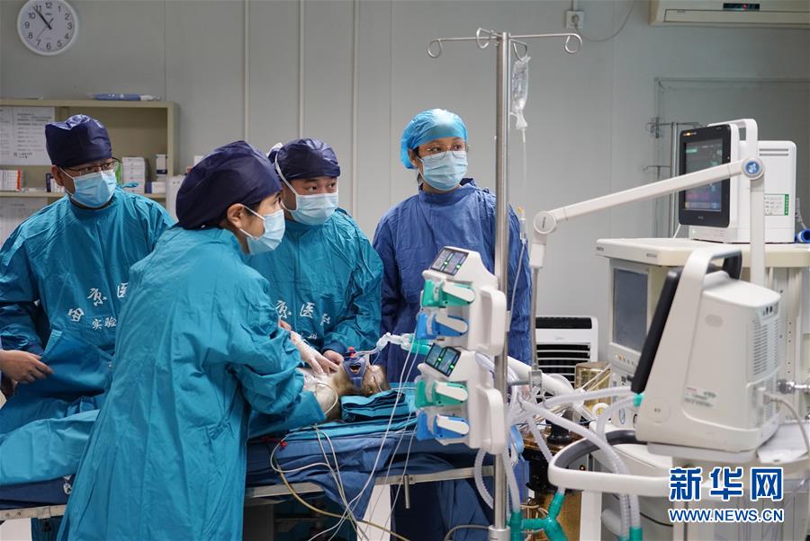 6月29日,醫(yī)護人員在病房內(nèi)查看移植肝受體猴的體征。日前,多基因編輯豬-恒河猴異種肝、心、腎器官移植在位于陜西西安的空軍軍醫(yī)大學西京醫(yī)院順利實施。研究團隊使用豬內(nèi)源性逆轉(zhuǎn)錄病毒(PERV)敲除的13個基因修飾豬作為供體,將一個供體豬的肝、心、腎分別移植給3只恒河猴受體。目前,移植肝和對應(yīng)的受體猴已存活16天,突破國際上的豬-猴輔助性肝移植最長存活時間記錄。這項研究有助于未來解決器官短缺造成的臨床器官移植發(fā)展受限難題。新華社記者邵瑞攝