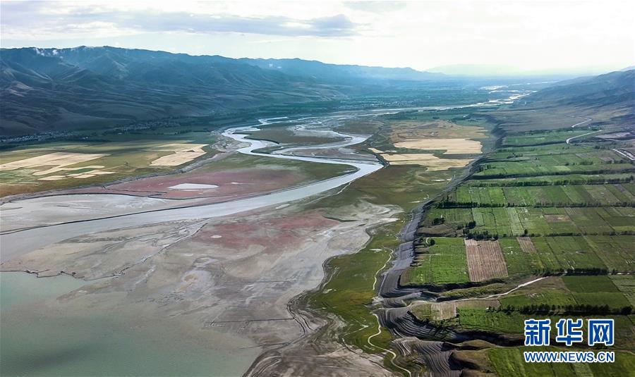 這是6月29日無人機拍攝的位于新疆特克斯縣境內(nèi)的喀拉托海湖風(fēng)光(無人機照片)。時值夏日,位于天山腳下的新疆特克斯縣境內(nèi)的喀拉托海湖風(fēng)光宜人,景色優(yōu)美。新華社記者王菲攝