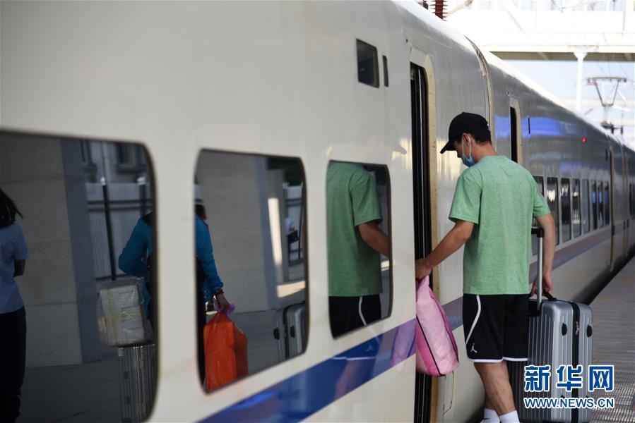 7月1日,旅客在山東章丘站上車。當日,2020年全國鐵路暑運拉開帷幕。新華社記者王凱攝