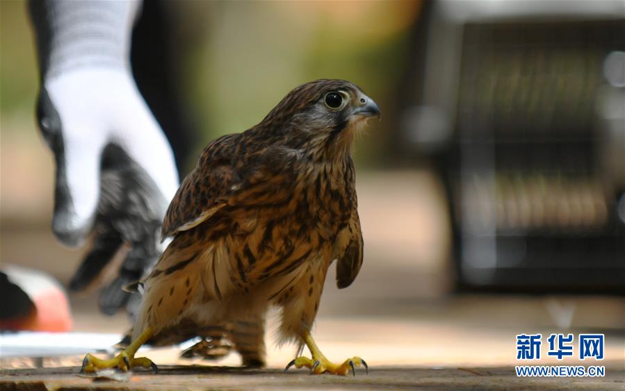 這是7月1日在放飛活動(dòng)上拍攝的一只紅隼。新華社記者林宏攝