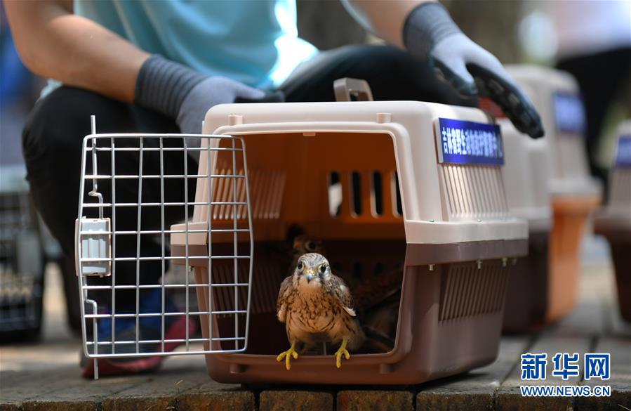 這是7月1日在放飛活動(dòng)上拍攝的一只紅隼。新華社記者林宏攝