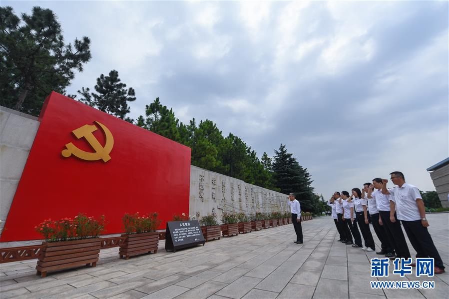 7月1日,嘉興市新冠肺炎疫情抗疫一線黨員在南湖景區(qū)的南湖革命紀(jì)念館參加“七一”重溫入黨誓詞活動。新華社記者徐昱攝