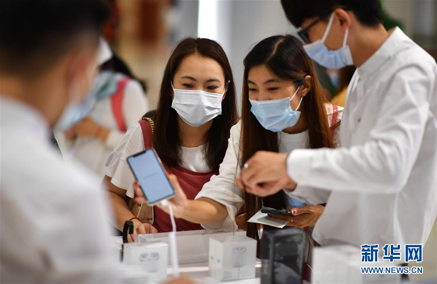 7月1日,顧客在??谌赵聫V場(chǎng)免稅店選購(gòu)手機(jī)等電子消費(fèi)產(chǎn)品。當(dāng)日,海南開(kāi)始實(shí)施調(diào)整后的離島免稅購(gòu)物政策。海南離島旅客每年每人免稅購(gòu)物額度提高至10萬(wàn)元,電子消費(fèi)產(chǎn)品等7類新增商品開(kāi)售。新華社記者郭程攝