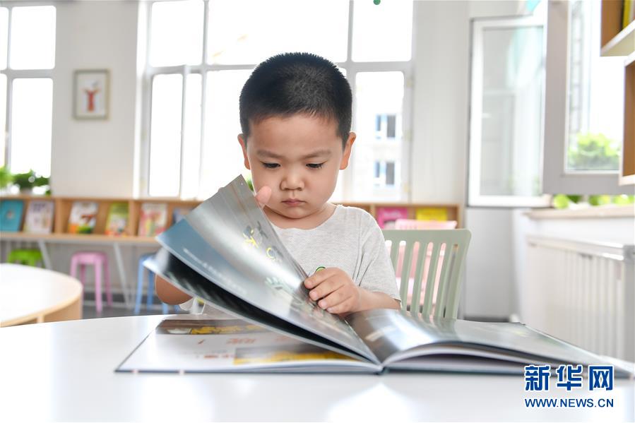 7月2日,在長春市少年兒童圖書館平陽社區(qū)繪本主題分館,小朋友閱讀繪本。長春市少年兒童圖書館平陽社區(qū)繪本主題分館位于南關(guān)區(qū)曙光街道平陽社區(qū),目前藏書約5000冊。該館于6月30日揭牌開館,由長春市少年兒童圖書館和南關(guān)區(qū)曙光街道辦事處共同打造,是長春首個繪本主題圖書分館??蔀橹苓吘用窈蛢和峁﹫D書借閱、數(shù)字閱讀體驗(yàn)、親子活動、少兒公益活動等服務(wù)。新華社記者張楠攝