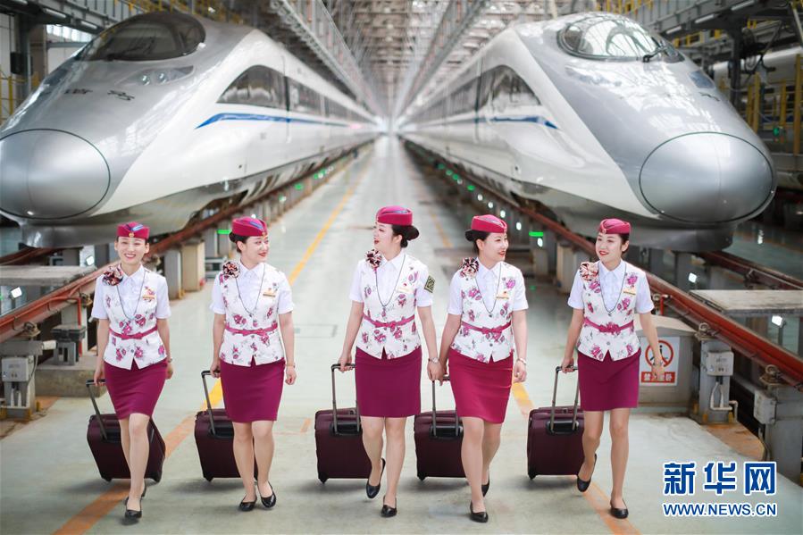 7月3日,擔(dān)任首發(fā)列車值乘工作的貴陽客運段乘務(wù)員在貴陽亮相。 新華社記者 劉續(xù) 攝