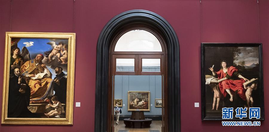 7月4日,參觀者佩戴口罩在英國國家美術館的媒體開放日上參觀。受新冠疫情影響而關閉的英國國家美術館將于7月8日重新對公眾開放,成為倫敦首批開門迎客的博物館、美術館。參觀者需提前網(wǎng)上預約參觀時段,全程佩戴口罩且保持安全距離。新華社記者韓巖攝