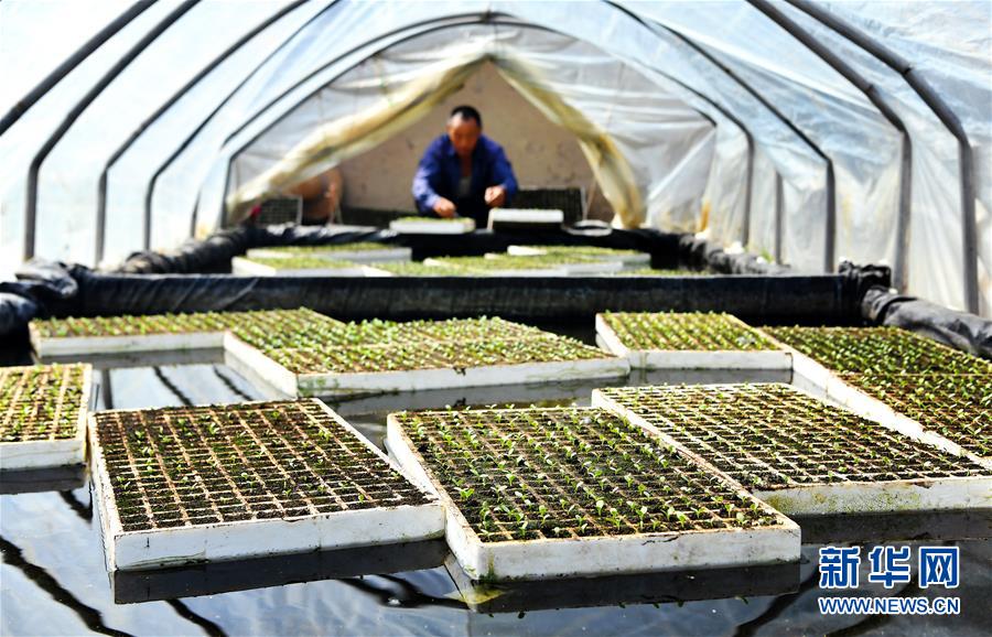陜西太白縣咀頭鎮(zhèn)塘口村的村民通過“漂浮育苗”的方式進(jìn)行蔬菜育苗(7月4日攝)。新華社記者劉瀟攝