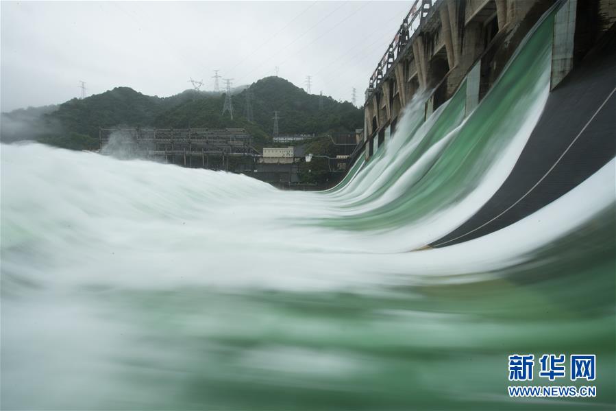 7月7日,新安江電廠工作人員從開啟7孔泄洪的新安江水庫(kù)壩底經(jīng)過。受持續(xù)降水影響,浙江新安江水庫(kù)水位持續(xù)快速上升。繼當(dāng)日10時(shí)開啟3孔、12時(shí)開啟5孔泄洪后,新安江水庫(kù)于16時(shí)增加到7孔泄洪。新安江水庫(kù)是華東地區(qū)最大的水庫(kù),在錢塘江流域的防洪度汛中起到關(guān)鍵作用。新華社記者翁忻旸攝