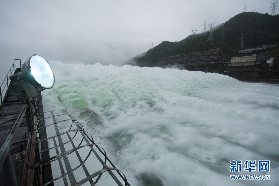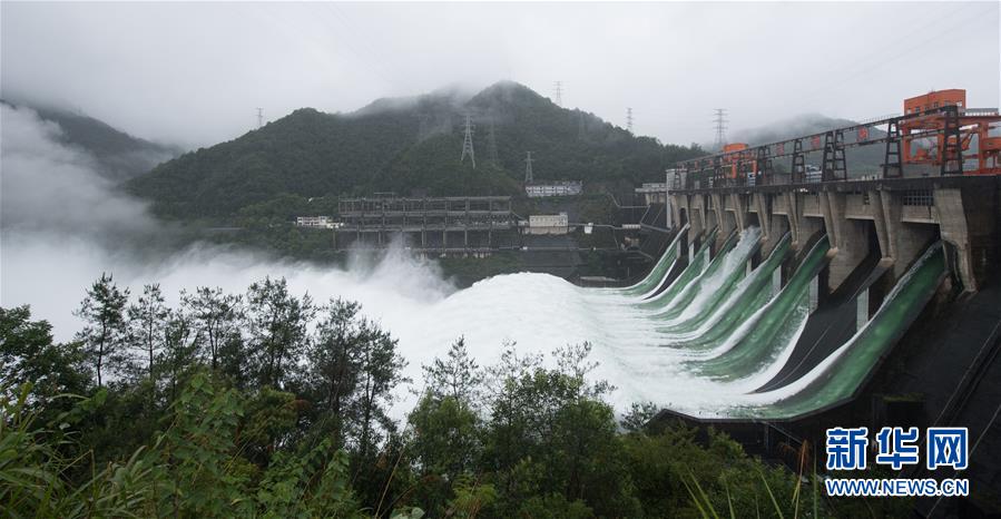 7月7日下午開啟7孔泄洪的新安江水庫(kù)(手機(jī)全景模式拍攝)。受持續(xù)降水影響,浙江新安江水庫(kù)水位持續(xù)快速上升。繼當(dāng)日10時(shí)開啟3孔、12時(shí)開啟5孔泄洪后,新安江水庫(kù)于16時(shí)增加到7孔泄洪。新安江水庫(kù)是華東地區(qū)最大的水庫(kù),在錢塘江流域的防洪度汛中起到關(guān)鍵作用。新華社記者翁忻旸攝