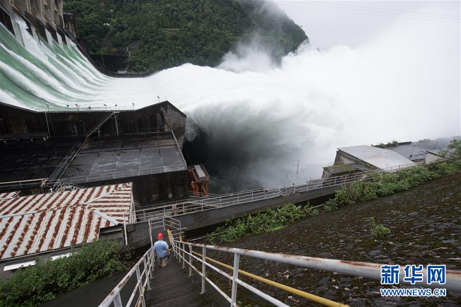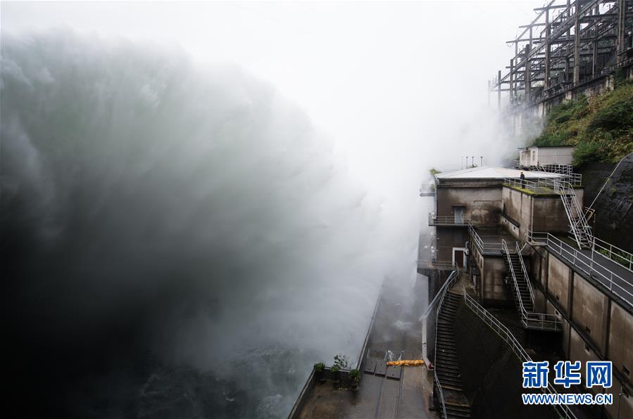 7月8日,新安江水庫(kù)開(kāi)啟9孔泄洪,新安江電廠工作人員在壩區(qū)巡視。當(dāng)日上午10時(shí),新安江水庫(kù)水位108.42米,超汛限水位1.92米,且持續(xù)上漲。繼7日10時(shí)開(kāi)啟3孔、12時(shí)開(kāi)啟5孔、16時(shí)開(kāi)啟7孔泄洪后,水庫(kù)于8日打開(kāi)全部9個(gè)泄洪閘泄洪,這在水庫(kù)建成運(yùn)營(yíng)61年來(lái)尚屬首次。新安江水庫(kù)是華東地區(qū)最大的水庫(kù),在錢(qián)塘江流域的防洪度汛中起到關(guān)鍵作用。新華社記者翁忻旸攝