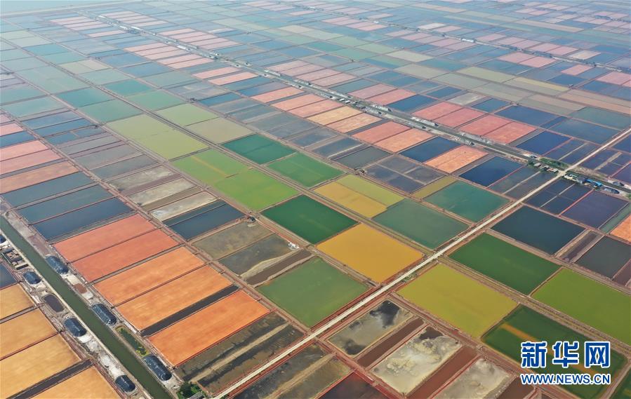 7月9日拍攝的唐山市曹妃甸區(qū)南堡鹽場鹽田(無人機(jī)照片)。在我國長蘆鹽區(qū)海鹽生產(chǎn)基地之一的河北省唐山市曹妃甸區(qū)南堡鹽場,一年一度的春鹽收獲工作即將結(jié)束,今年南堡鹽場的春鹽產(chǎn)量預(yù)計(jì)可達(dá)72萬噸。新華社記者楊世堯攝