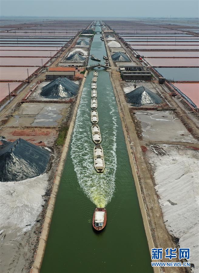 7月9日,唐山市曹妃甸區(qū)南堡鹽場(chǎng)的運(yùn)鹽船只在運(yùn)輸河道內(nèi)行駛(無(wú)人機(jī)照片)。在我國(guó)長(zhǎng)蘆鹽區(qū)海鹽生產(chǎn)基地之一的河北省唐山市曹妃甸區(qū)南堡鹽場(chǎng),一年一度的春鹽收獲工作即將結(jié)束,今年南堡鹽場(chǎng)的春鹽產(chǎn)量預(yù)計(jì)可達(dá)72萬(wàn)噸。新華社記者楊世堯攝