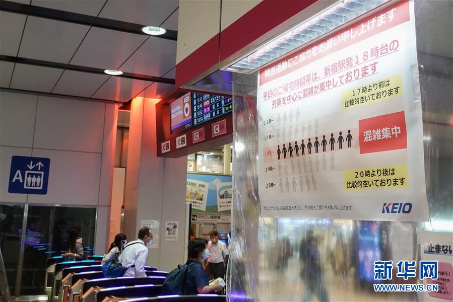 7月9日,日本東京新宿車站的一處入口上貼出告示,顯示該線路的人流量統(tǒng)計(jì),建議乘客錯(cuò)峰出行。據(jù)日本廣播協(xié)會(huì)電視臺(tái)9日統(tǒng)計(jì),截至當(dāng)?shù)貢r(shí)間9日20時(shí)40分,日本當(dāng)日新增新冠確診病例354例,是5月2日以來該國單日新增確診首次超過300例,累計(jì)確診20767例,累計(jì)死亡982例。據(jù)統(tǒng)計(jì),東京都當(dāng)天新增確診224例,創(chuàng)當(dāng)?shù)爻霈F(xiàn)疫情以來單日新增確診新高。新華社記者杜瀟逸攝