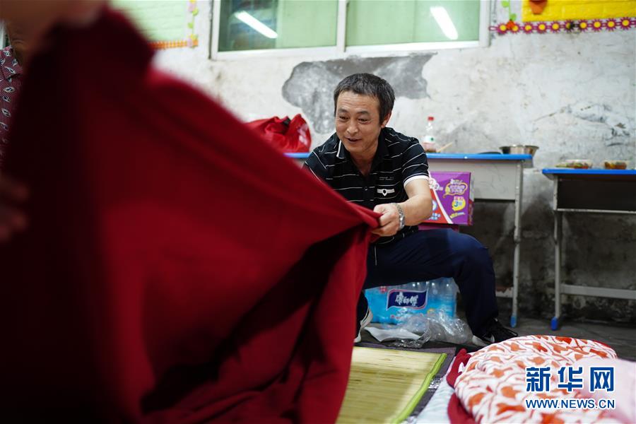 7月9日,在教室安置的村民將剛剛得到的寢具鋪在地上準備睡覺。當日,江西鄱陽縣鄱陽鎮(zhèn)因洪水受災(zāi)的村民被轉(zhuǎn)移到多個集中安置點。在鄱陽縣五一中心學校安置點,志愿者和工作人員接到任務(wù)后不到十小時內(nèi),為被轉(zhuǎn)移村民布置了28間教室,供519人安頓,并為村民發(fā)放褥子、床單、枕頭、盒飯、飲用水等物資。新華社記者周密攝