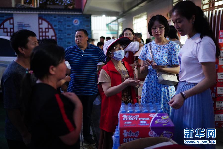 7月9日,村民在領(lǐng)取物資。當日,江西鄱陽縣鄱陽鎮(zhèn)因洪水受災(zāi)的村民被轉(zhuǎn)移到多個集中安置點。在鄱陽縣五一中心學校安置點,志愿者和工作人員接到任務(wù)后不到十小時內(nèi),為被轉(zhuǎn)移村民布置了28間教室,供519人安頓,并為村民發(fā)放褥子、床單、枕頭、盒飯、飲用水等物資。新華社記者周密攝