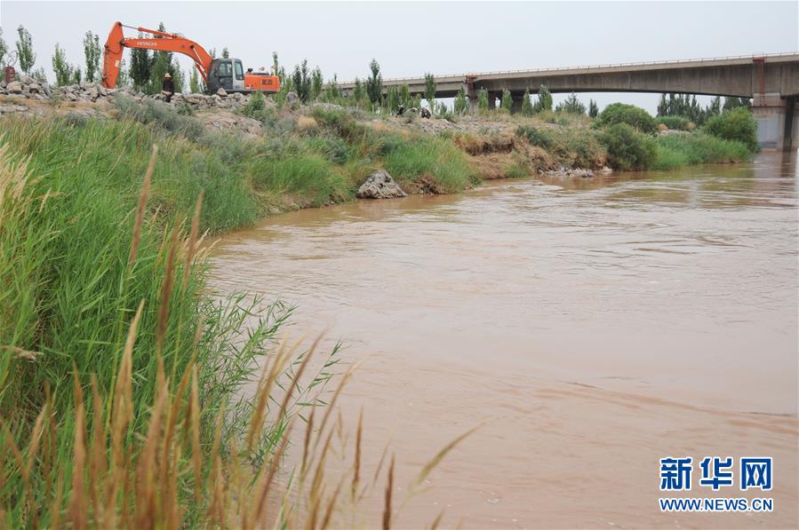 7月11日,工人在黃河內(nèi)蒙古磴口段南套子險(xiǎn)工段進(jìn)行除險(xiǎn)加固。新華社記者李云平攝