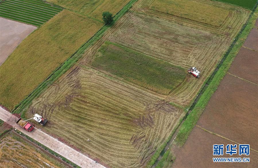 7月11日,在湖南省衡陽市衡陽縣臺源鎮(zhèn)臺九村,村民駕駛收割機收割早稻(無人機照片)。近日,湖南各地農村陸續(xù)進入“雙搶”季,農民緊抓農時,搶收搶種,力爭糧食穩(wěn)產豐收。新華社記者趙眾志攝