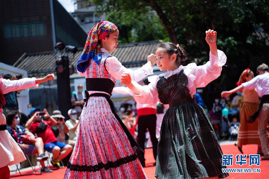 7月11日,演員在“慶祝澳門歷史城區(qū)申遺成功15周年嘉年華”上表演土風(fēng)舞。新華社記者張金加攝