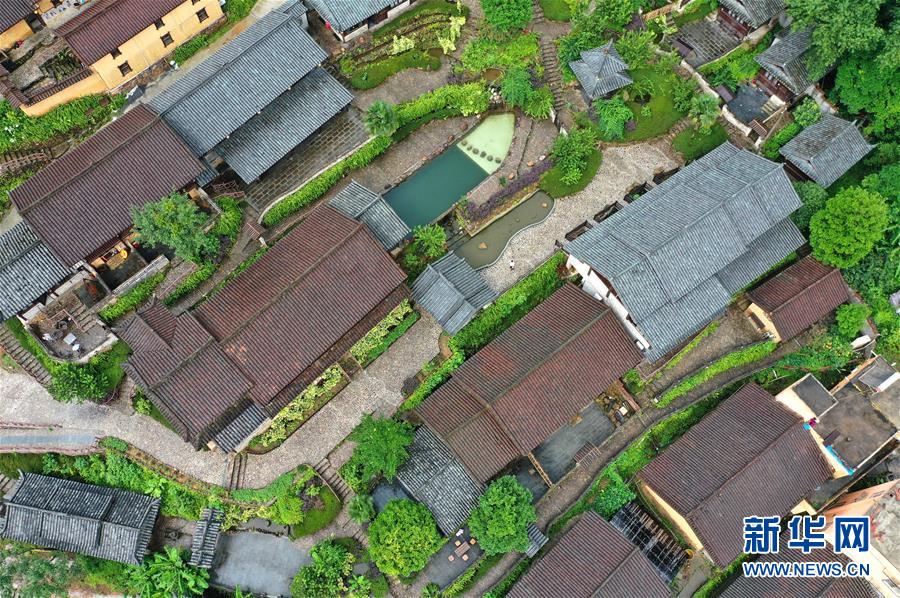 7月11日拍攝的金秀瑤族自治縣六巷鄉(xiāng)的一處民宿(無人機照片)。近年來,廣西金秀瑤族自治縣依托當?shù)刈匀簧鷳B(tài)優(yōu)勢,圍繞境內(nèi)豐富的瑤族文化,大力發(fā)展鄉(xiāng)村旅游,精心打造一批獨具瑤族特色的山間民宿酒店,取得良好經(jīng)濟效益。新華社記者 周華 攝