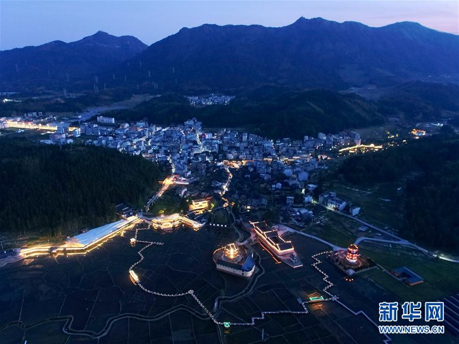 4月17日拍攝的福建省周寧縣浦源鎮(zhèn)浦源村夜色(無人機(jī)照片)。新華社記者 姜克紅 攝