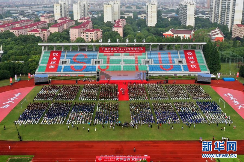 7月12日拍攝的上海交通大學(xué)2020年畢業(yè)典禮現(xiàn)場(chǎng)(無(wú)人機(jī)照片)。新華社記者 劉穎 攝