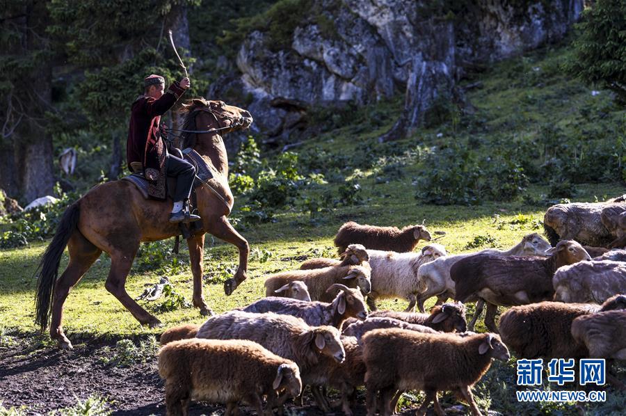 時(shí)值盛夏,新疆西天山水草豐美,夏牧場(chǎng)上牛羊成群。和煦的陽光普照草場(chǎng),也照進(jìn)牧民心中。