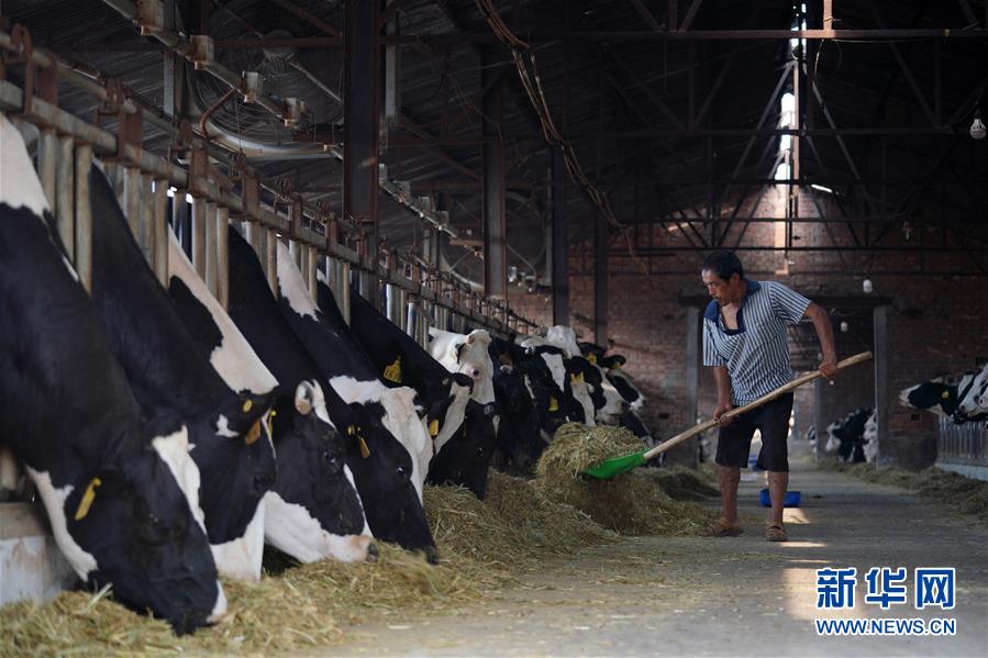 7月11日,河北省清河縣永興奶牛養(yǎng)殖場的工人在給奶牛喂食。近年來,河北省清河縣將扶貧工作與現(xiàn)代農(nóng)業(yè)結(jié)合,以龍頭企業(yè)為引領(lǐng),成立合作社,鼓勵貧困戶利用扶貧資金入股奶牛養(yǎng)殖場,幫助他們常年獲得穩(wěn)定收益。同時,貧困戶農(nóng)閑時還可到產(chǎn)業(yè)園區(qū)打工,既拿股金,又掙薪金,實現(xiàn)“造血式”脫貧。新華社記者 牟宇 攝
