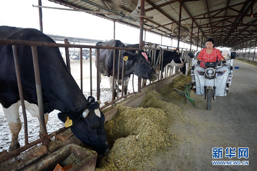 7月11日,河北省清河縣永興奶牛養(yǎng)殖場的工人正在工作。近年來,河北省清河縣將扶貧工作與現(xiàn)代農(nóng)業(yè)結(jié)合,以龍頭企業(yè)為引領(lǐng),成立合作社,鼓勵貧困戶利用扶貧資金入股奶牛養(yǎng)殖場,幫助他們常年獲得穩(wěn)定收益。同時,貧困戶農(nóng)閑時還可到產(chǎn)業(yè)園區(qū)打工,既拿股金,又掙薪金,實現(xiàn)“造血式”脫貧。新華社記者 牟宇 攝