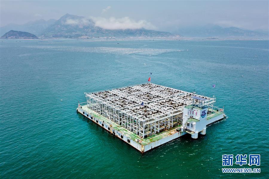 7月14日拍攝的位于福建省連江縣苔菉鎮(zhèn)海域的深遠(yuǎn)海養(yǎng)殖平臺“福鮑一號”(無人機(jī)照片)。