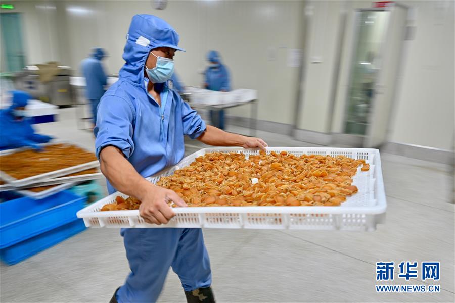 7月14日,福建省連江縣一家鮑魚(yú)加工企業(yè),工人在搬運(yùn)鮑魚(yú)產(chǎn)品。新華社記者 姜克紅 攝