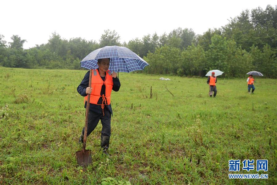 7月16日,鐵銅鄉(xiāng)新豐村的抗洪搶險(xiǎn)隊(duì)員鮑大友(左)和隊(duì)友在圩堤上巡堤查險(xiǎn)。受長(zhǎng)江持續(xù)高水位影響,安徽省樅陽(yáng)縣的鐵銅鄉(xiāng)江心洲已于近日將江心洲上的居民轉(zhuǎn)移安置,而包括搶險(xiǎn)隊(duì)員、鄉(xiāng)鎮(zhèn)干部、水利工程師等在內(nèi)的近300人“留守”在江心洲上巡堤查險(xiǎn),守護(hù)家園。鐵銅鄉(xiāng)位于長(zhǎng)江江心洲上,有4個(gè)行政村52個(gè)村民組,耕地面積12000多畝。新華社記者黃博涵攝