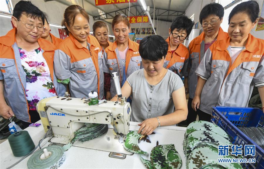 7月16日,在河北省深州市高古莊鎮(zhèn)鳳凰池村扶貧車間,馬京娜示范縫紉技藝。馬京娜是河北省深州市高古莊鎮(zhèn)鳳凰池村的致富能手。在市、鄉(xiāng)、村各級部門的大力支持下,馬京娜創(chuàng)辦扶貧車間,為建檔立卡貧困戶設(shè)立崗位,帶領(lǐng)貧困戶脫貧增收。目前,馬京娜的扶貧車間提供就業(yè)崗位30多個(gè)。新華社記者李曉果攝