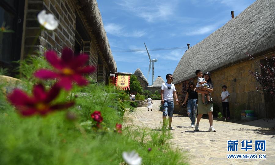 7月17日,游客在以傳統(tǒng)海草民居聞名的山東榮成東楮島村觀光。近年來,山東省榮成市重點(diǎn)發(fā)展特色海洋旅游產(chǎn)業(yè),打造眾多國家級海洋牧場,保留修復(fù)傳統(tǒng)海草民居,吸引游客前來觀光體驗(yàn)。如今特色海洋旅游已逐漸成為榮成經(jīng)濟(jì)發(fā)展新的增長點(diǎn)。新華社記者王凱攝