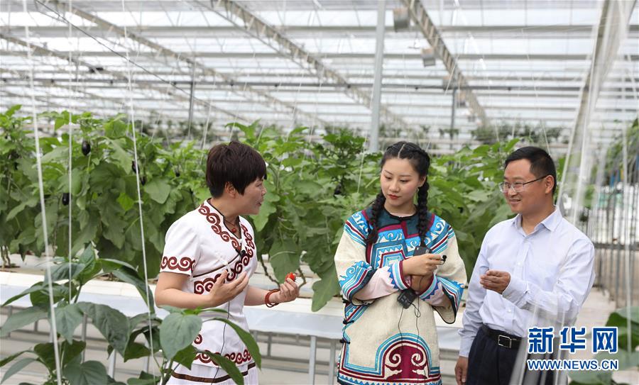 7月18日,在涼山州昭覺縣粵川東西部扶貧協(xié)作項目產業(yè)園,昭覺縣副縣長徐航(右)和王涼萍(左)在直播活動中向網友推薦產業(yè)園出產的水果番茄。7月16日至18日,來自四川省涼山彝族自治州、廣東省佛山市的十余名干部攜手大涼山網絡主播,走進電商“云展銷”直播間和粵川東西部扶貧協(xié)作項目產業(yè)園,為涼山11個縣的農特產品直播“帶貨”,通過電商銷售帶動消費扶貧。新華社記者江宏景攝