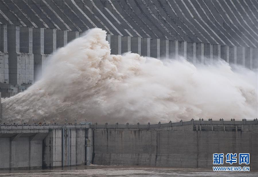 7月19日,三峽樞紐開啟泄洪深孔泄洪。19日20時,三峽水庫入庫流量4.6萬立方米/秒,較本輪洪水的峰值6.1萬立方米/秒下降了1.5萬立方米/秒?!伴L江2020年第2號洪水”平穩(wěn)通過三峽大壩。新華社記者肖藝九攝