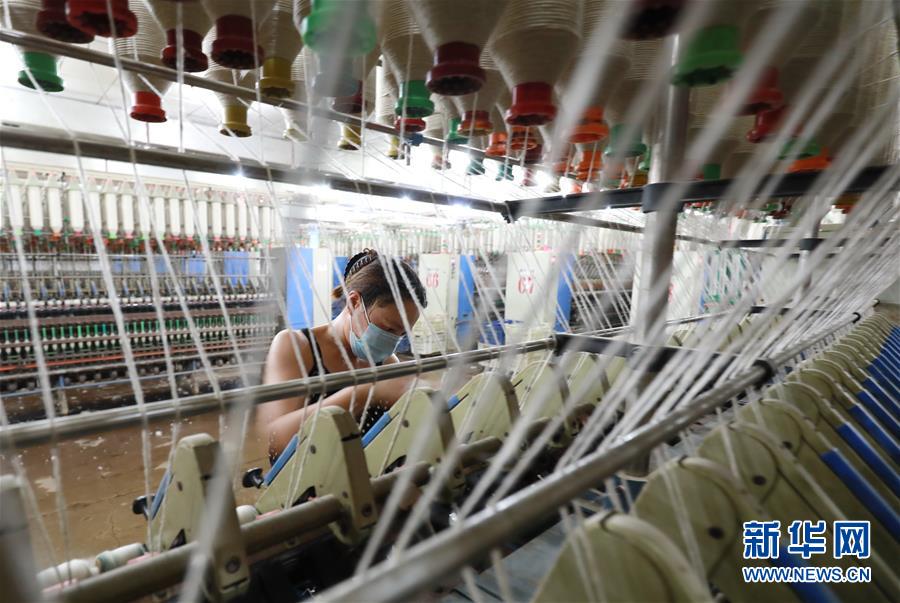 7月20日,工人在灤南縣長凝鎮(zhèn)的一家紡織廠生產(chǎn)車間里工作。近年來,河北省灤南縣大力發(fā)展村邊民營企業(yè),引導(dǎo)企業(yè)在鄉(xiāng)鎮(zhèn)村邊建廠,帶動當(dāng)?shù)?萬多名農(nóng)村群眾在村邊就近就業(yè),實(shí)現(xiàn)穩(wěn)步增收。新華社記者楊世堯攝