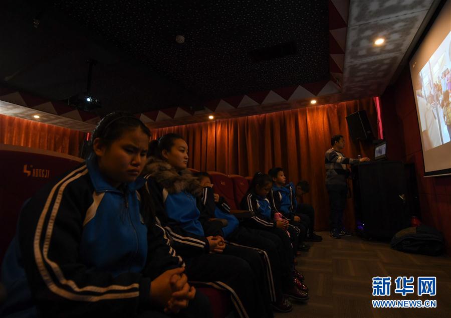 2019年12月3日,視障孩子在聽蘇日娜解說電影。當(dāng)日,家住內(nèi)蒙古呼和浩特市的蘇日娜來到內(nèi)蒙古圖書館內(nèi)的殘障人圖書館,為視障人士舉辦詩歌朗誦會并解說電影。新華社記者彭源攝