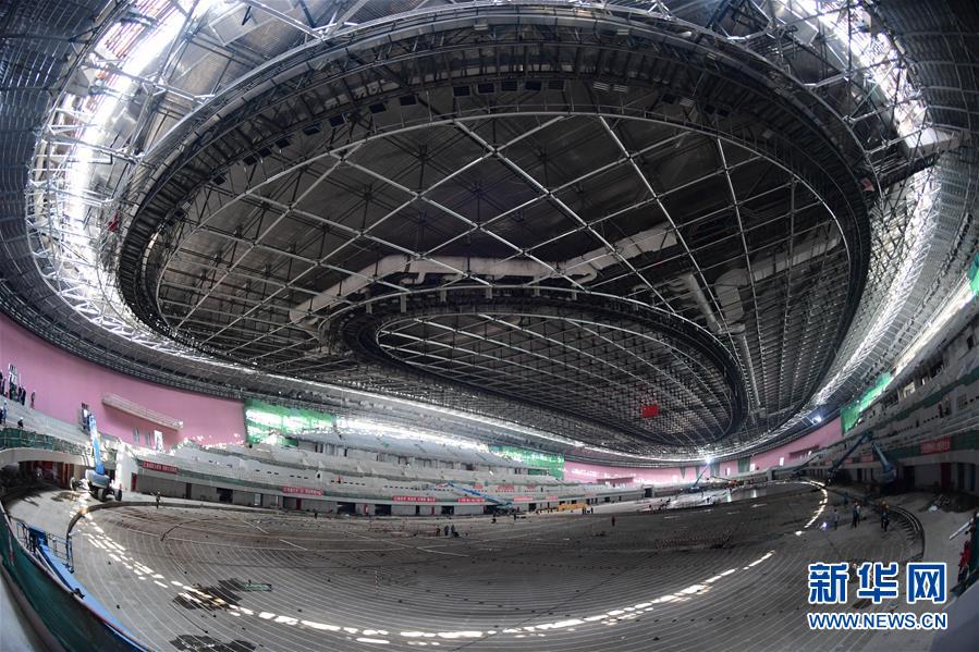 這是7月22日在北京拍攝的正在施工的國家速滑館內(nèi)景。新華社記者張晨霖攝