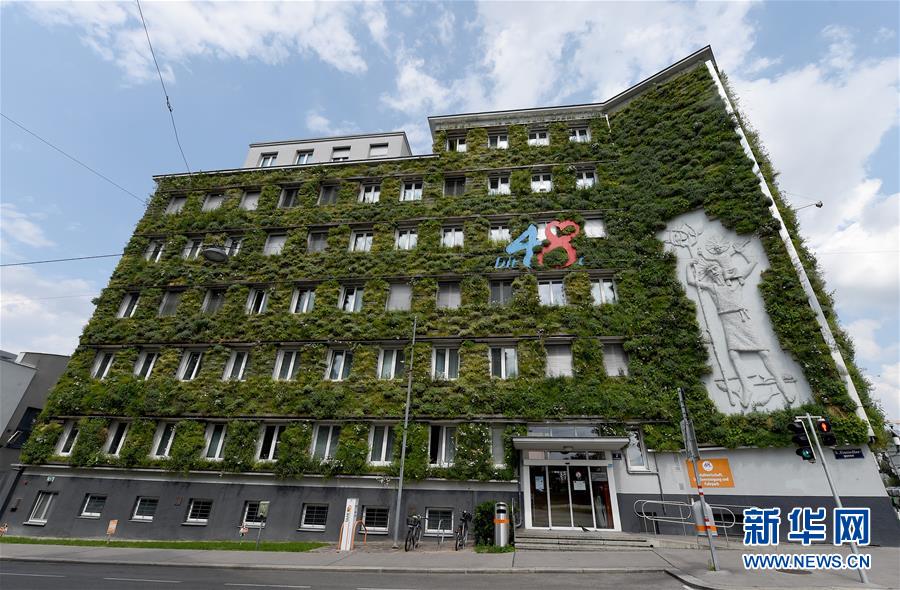 這是7月22日拍攝的奧地利維也納市政管理局廢物處理辦公總部(MA48)外景。奧地利首都維也納的市政管理局廢物處理辦公總部的外墻被種植的綠色植物覆蓋,成為了維也納市建設(shè)綠色城市、節(jié)能減排的“示例樓”。據(jù)介紹,這個外墻項(xiàng)目建立于2010年,每年在夏季為該建筑自然降溫、增加濕度,從而減少空調(diào)的使用,并可吸收二氧化碳。維也納市政府提倡市內(nèi)建筑建設(shè)綠色外墻,并提供資金支持。新華社記者郭晨攝