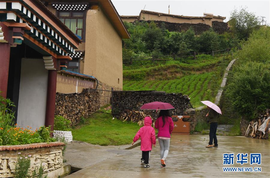 7月5日,來(lái)自成都的游客在阿壩縣查理鄉(xiāng)神座村游玩。新華社記者陳燮攝