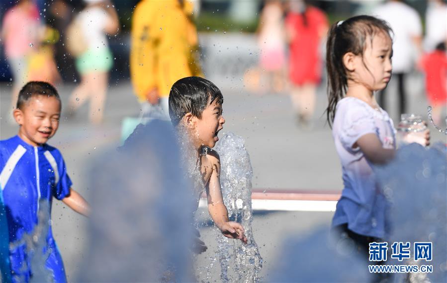 7月24日,孩子們在北京華熙LIVE·五棵松商業(yè)街區(qū)的一處噴泉戲水。北京市氣象局7月24日傍晚發(fā)布稱,24日截至16時30分,平原大部分地區(qū)出現(xiàn)37℃以上高溫天氣,局地氣溫超過40℃。北京市已于23日發(fā)布高溫藍色預警,預計25日全市大部分地區(qū)日最高氣溫仍將達35℃以上。新華社記者陳曄華攝