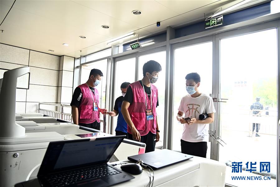 7月26日,在青島國(guó)信體育館,蘇柯帆(右)正在進(jìn)場(chǎng)。他成為CBA聯(lián)賽允許觀眾現(xiàn)場(chǎng)觀賽后,首位進(jìn)場(chǎng)的觀眾。當(dāng)日,在山東青島舉行的2019-2020賽季中國(guó)男子籃球職業(yè)聯(lián)賽(CBA)復(fù)賽第二階段(嶗山賽區(qū))比賽中,醫(yī)護(hù)人員、教師、公安戰(zhàn)線人士通過(guò)官方購(gòu)票平臺(tái),完成包括核酸檢測(cè)在內(nèi)的相關(guān)流程后進(jìn)場(chǎng)觀看了上海久事隊(duì)迎戰(zhàn)山東西王隊(duì)的比賽。觀賽期間,觀賽者須全程佩戴口罩,對(duì)號(hào)入座,嚴(yán)格保持間隔一米就座。退場(chǎng)時(shí),觀眾須按照自后向前、先兩邊后中間的順序,保持“一米線”社交距離有序退場(chǎng)。新華社記者 郭緒雷 攝