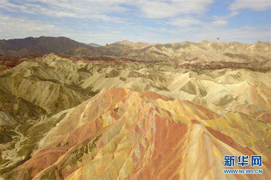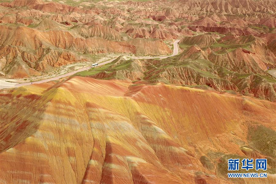 這是7月27日拍攝的張掖世界地質(zhì)公園七彩丹霞景區(qū)景觀(無(wú)人機(jī)照片)。新華社記者 范培珅 攝
