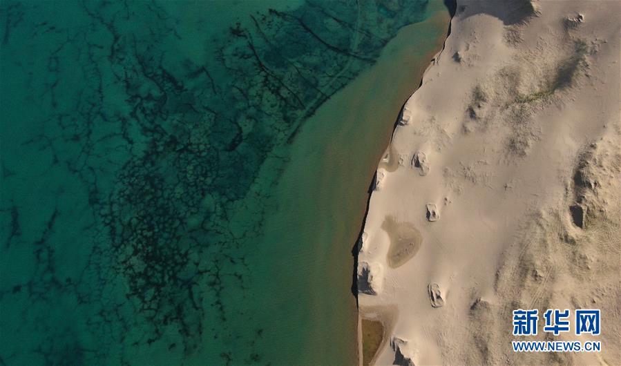這是青海湖沙島風光(7月28日攝,無人機照片)。盛夏傍晚,位于青海湖東北部的沙島,島內(nèi)湖泊星羅棋布,沙丘連綿起伏,風景別致。金沙與湖水掩映,在陽光的勾勒下形成一幅美麗的畫卷。新華社記者張宏祥攝